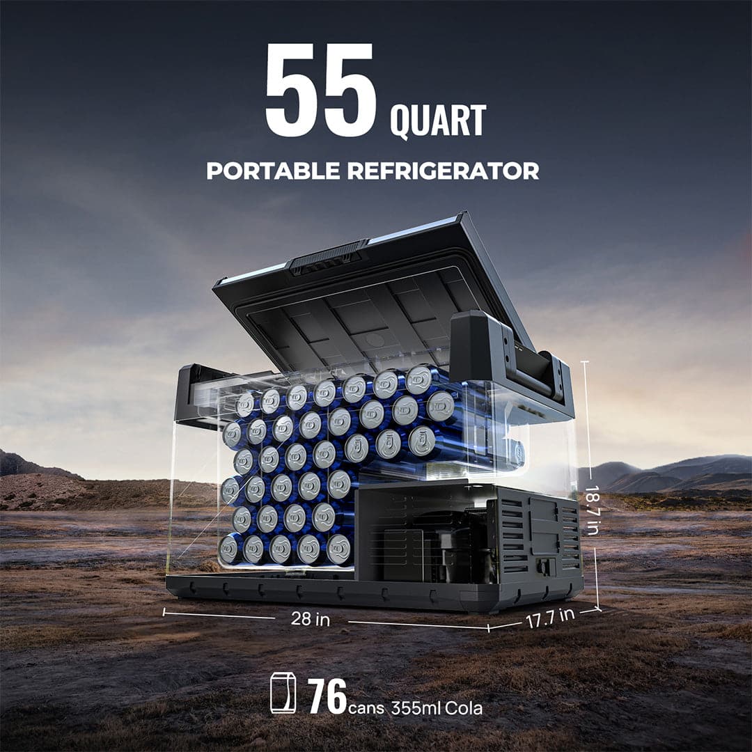 Disfrute de la comodidad de tener refrigerios a su alcance durante viajes por carretera y escapadas al aire libre con el refrigerador todoterreno BougeRV Rocky 55QT Dual Zone, ¡un compañero imprescindible en viajes largos!