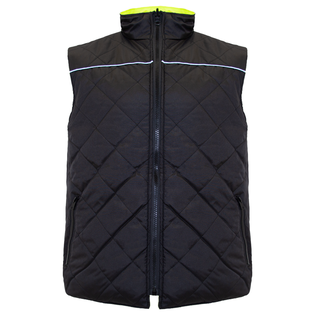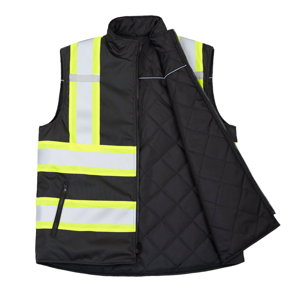 Hi-Vis Yellow/Black Reversible Insulated Safety Vest with Reflective Strips