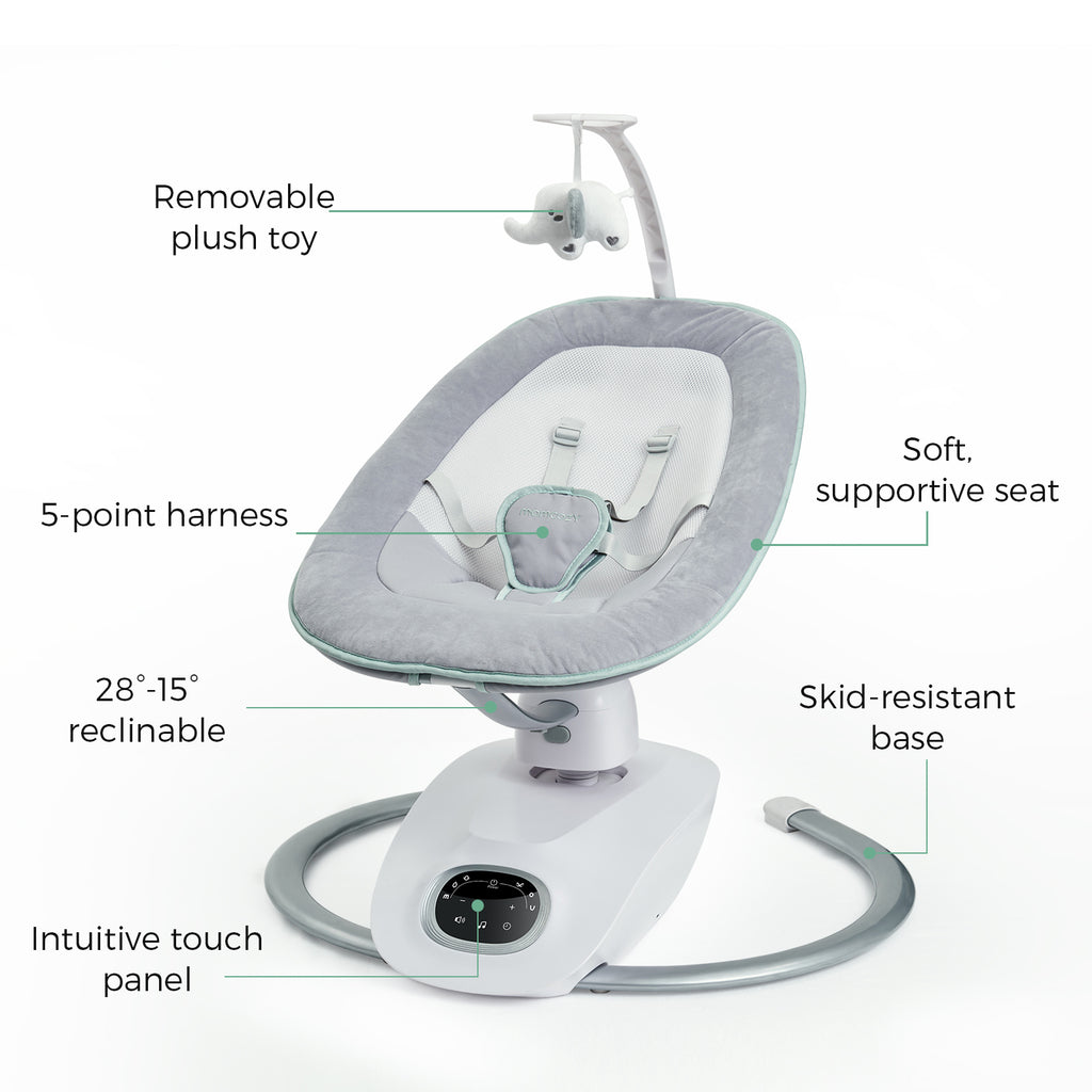 The swing mimics a parent’s natural movement using advanced 3D Swing Technology. Combined with multiple swing settings, it provides a smooth, secure, and cozy experience for your baby.