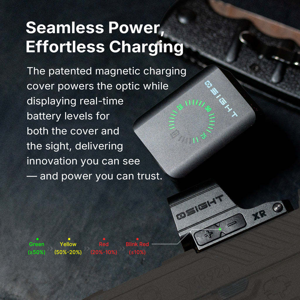 Designed to redefine versatility, the Osight XR features the industry’s first 2/6+32 MOA Multi-Reticle System, allowing you to switch effortlessly between a precise 2 MOA dot, bold 6 MOA dot, expansive 32 MOA circle, or combined configurations to match any shooting scenario. An integrated Collapsible Backup Rear Sight (CBRS) offers instant redundancy with a simple press, keeping you on target even if the optic is powered down. Power management is equally innovative, thanks to the patented Magnetic Charging Cover that not only recharges the optic but also displays real-time battery levels for both the sight and the cover itself. The result is a cutting-edge reflex sight that blends innovation, reliability, and performance into one rugged, mission-ready package.