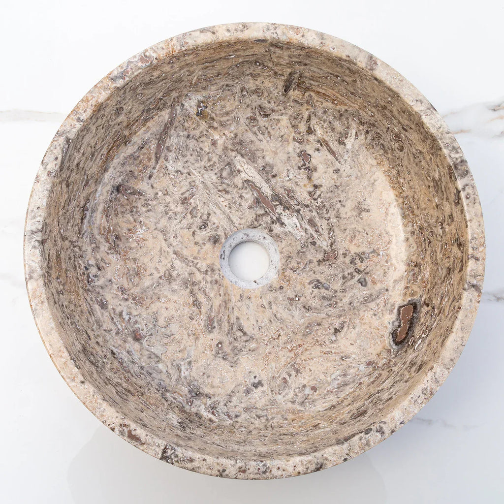 Silver Latte Travertine Natural Stone Above Vanity Bathroom Sink Polished (D)16" (H)5"