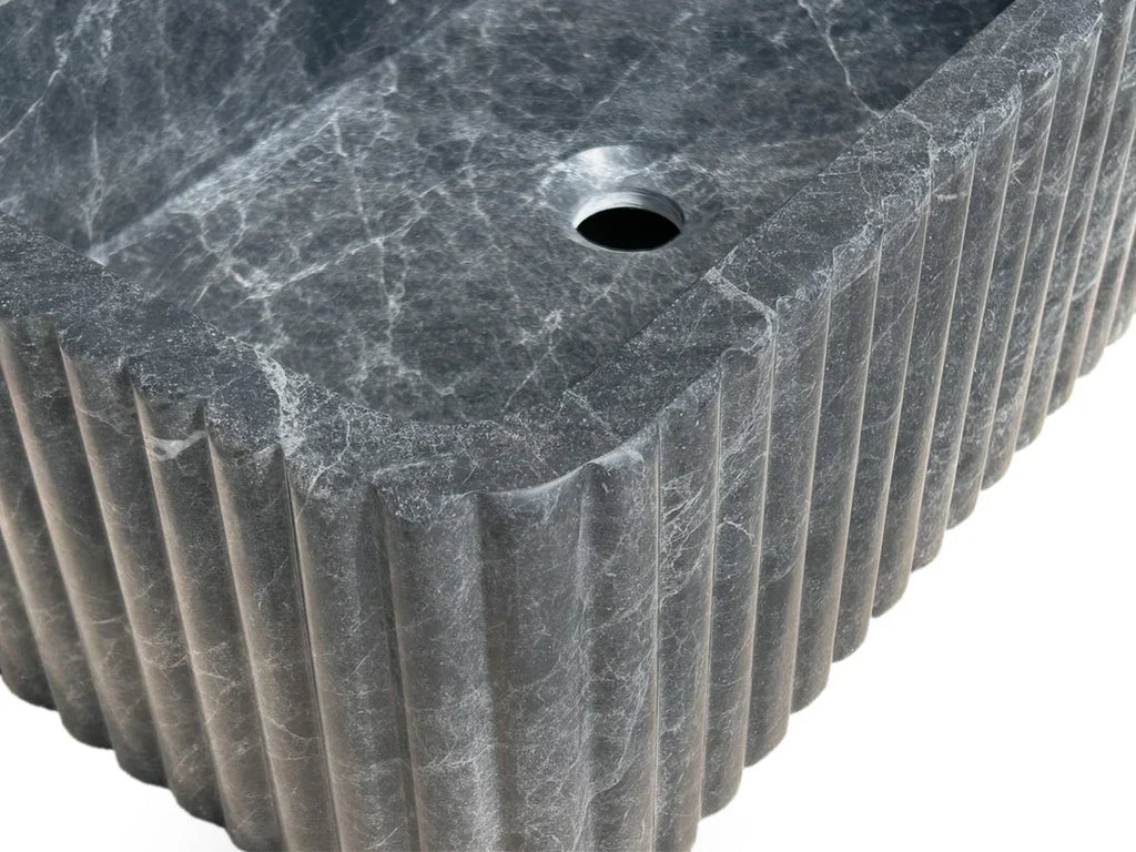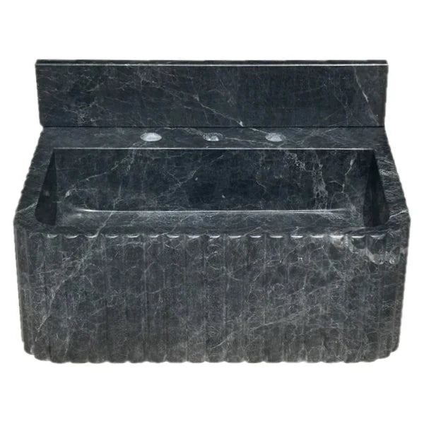 Sirius Black Marble Wall-mount Bathroom Sink Ribbed with 4" Backsplash (W)16" (L)20" (H)8"