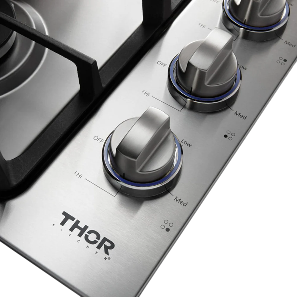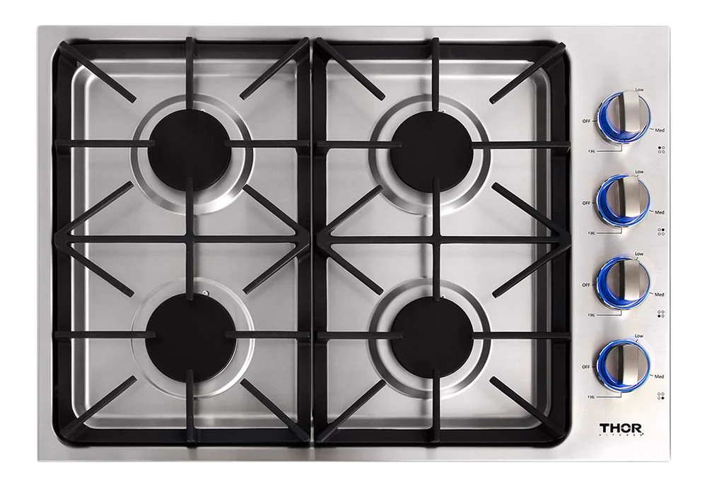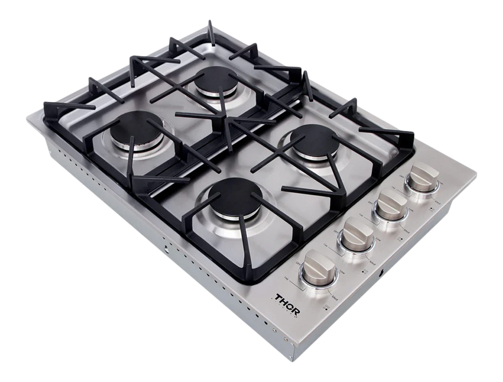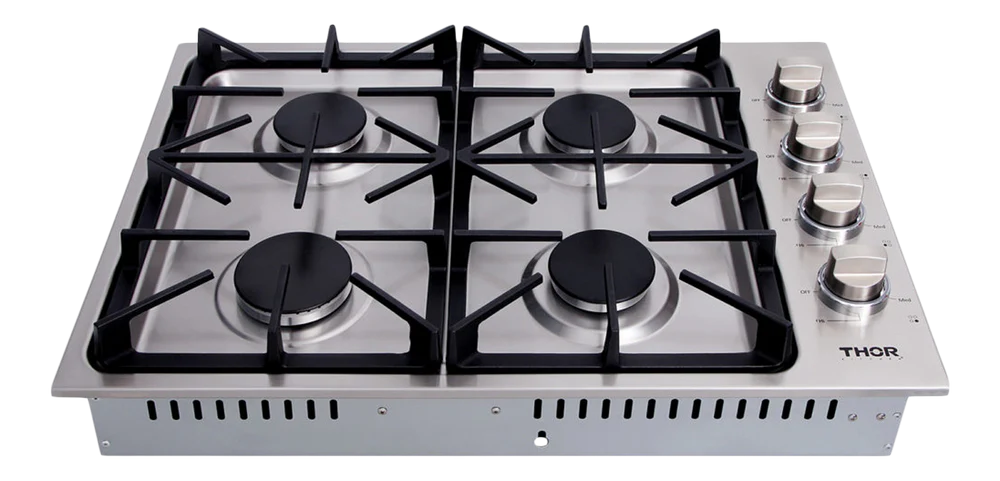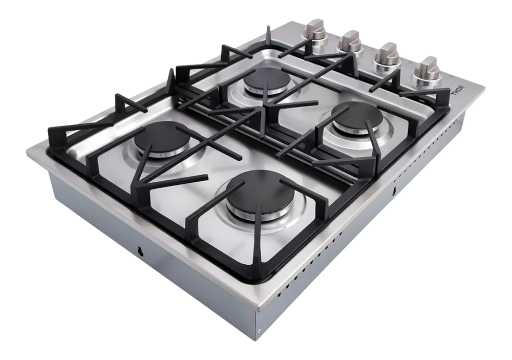 Cocina de gas empotrable profesional Thor Kitchen con cuatro quemadores en acero inoxidable