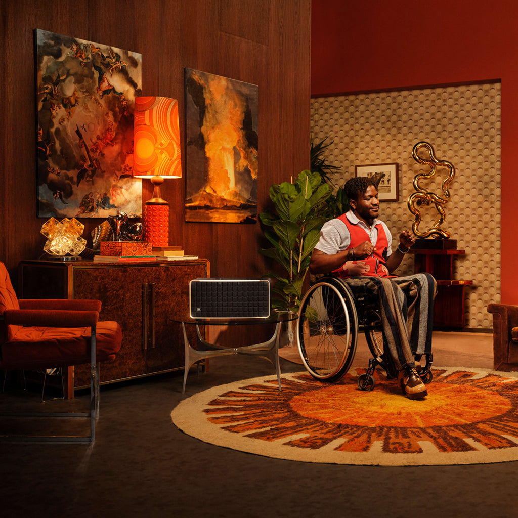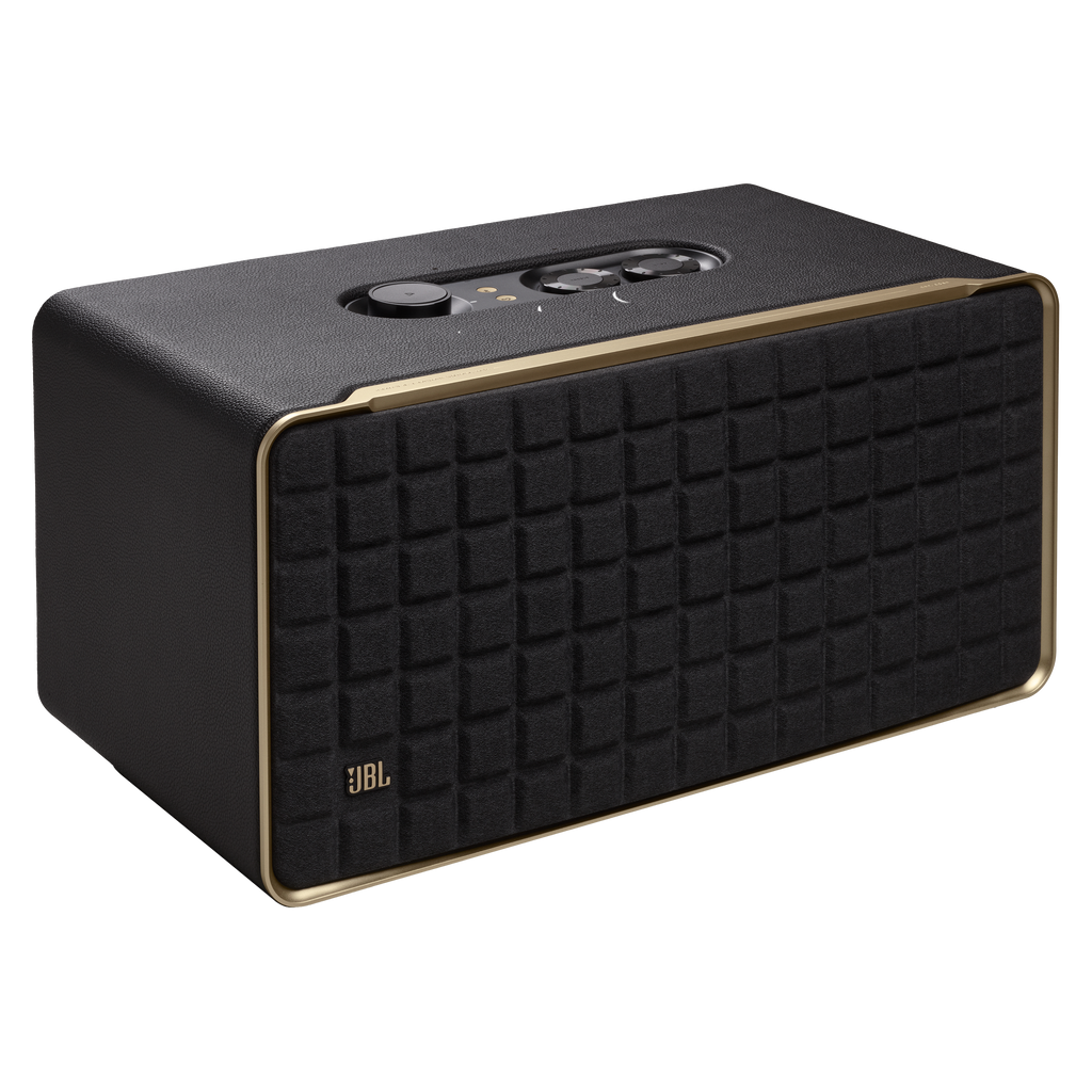 - Iconic retro-inspired design with premium aluminum frame, custom leather-like enclosure, and Quadrex grille complements any room and fills large spaces with superior JBL sound.