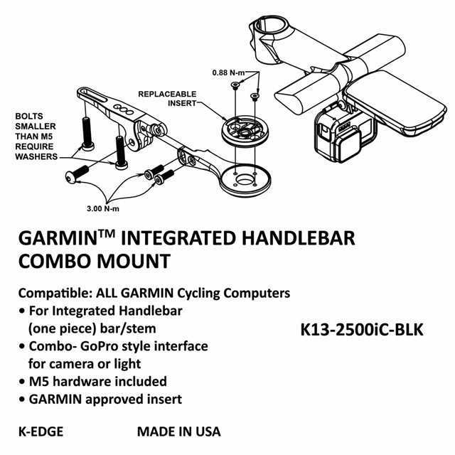 K-EDGE Integrated Handlebar System Combo Mount for Garmin