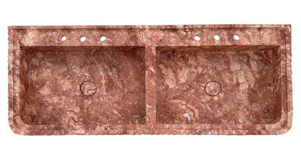 Red Travertine Double Bathroom Vanity Sink Fluted on Front and Edges (W)20" (L)48"