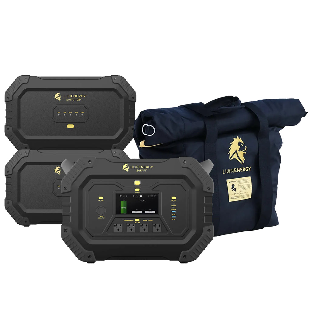 Create a great portable solar generator package. This kit comes with our largest portable generator—the Safari —that powers virtually anything you can plug into a standard wall outlet (15A) – power tools, refrigerators, freezers, air compressors, TVs, medical devices, blenders, and so much more!